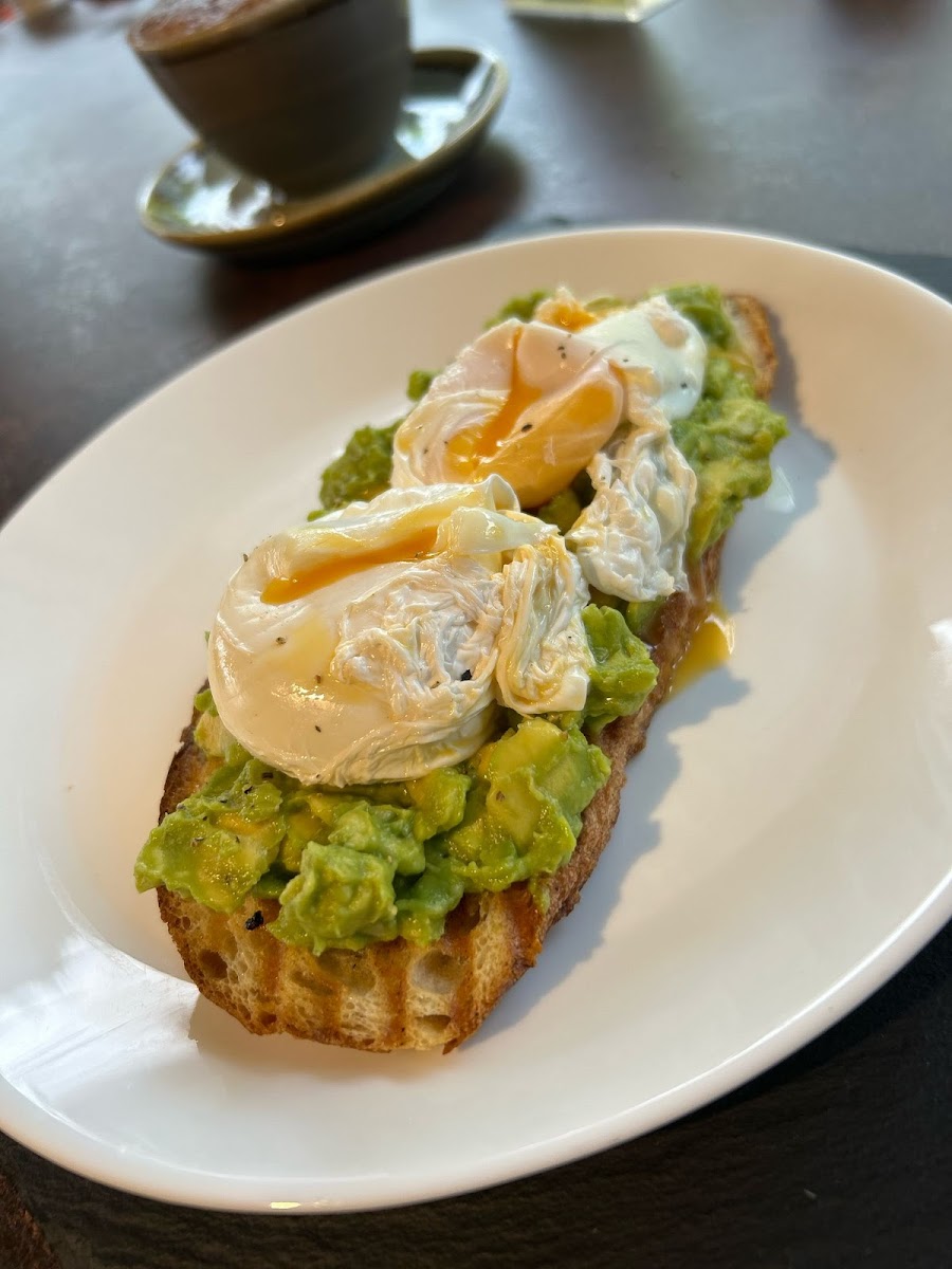 2 eggs, scrambled or poached with avocado on sourdough toast
